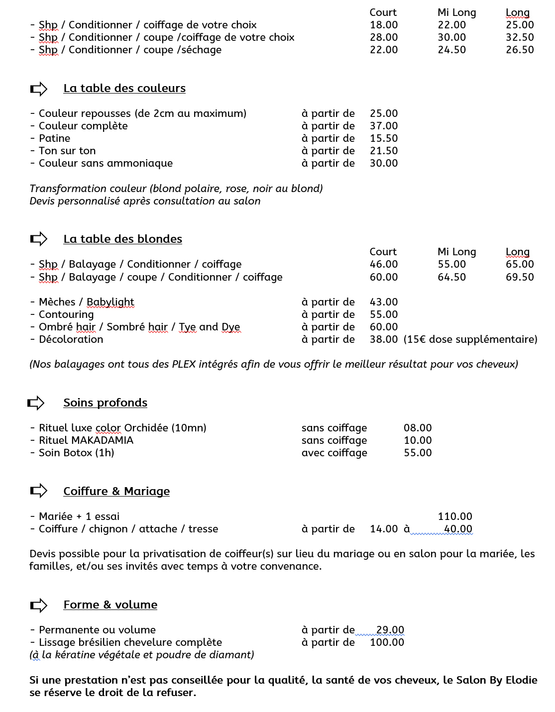 Tarifs